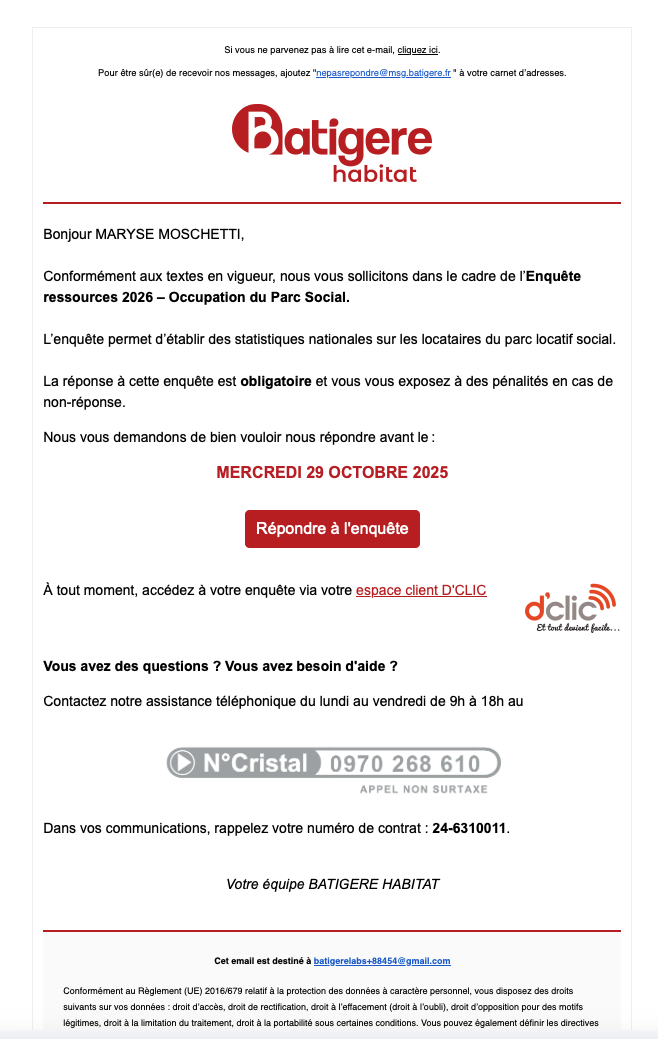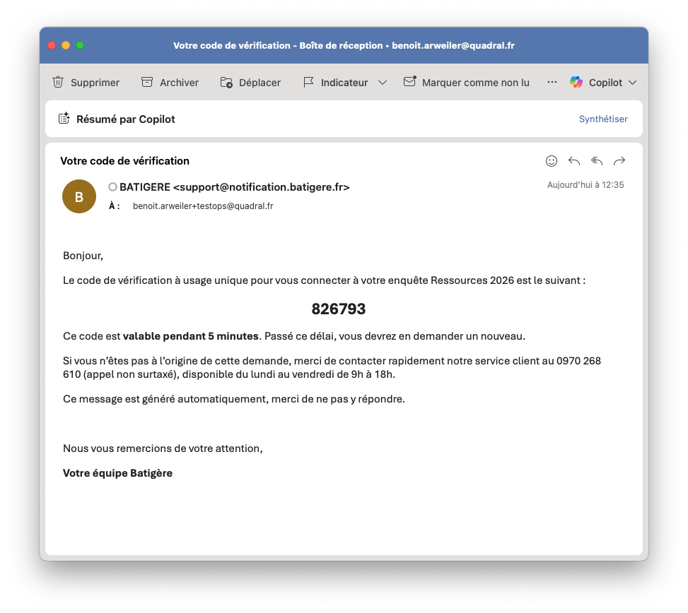Votre code de vérification Batigère est 531532. Ce code est valable 5 minutes.