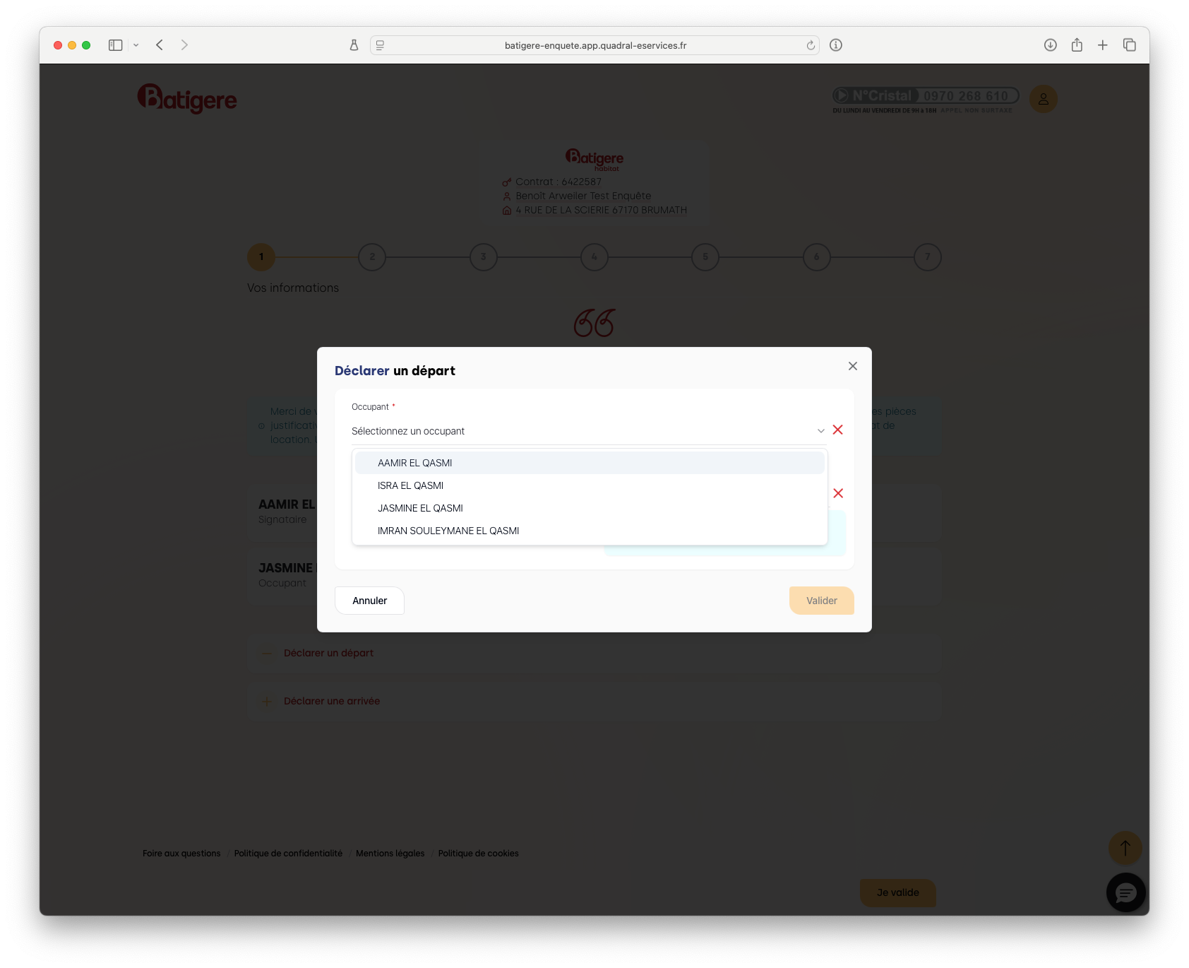 Il faut choisir dans la liste quelle est la personne qui quitte le logement, ainsi que la date de départ ainsi qu'un motif.
