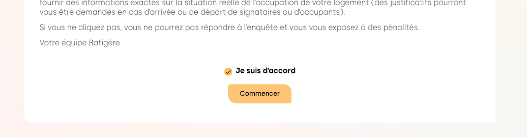 L'utilisateur doit cocher la case "Je suis d'accord" puis cliquer sur Commencer.