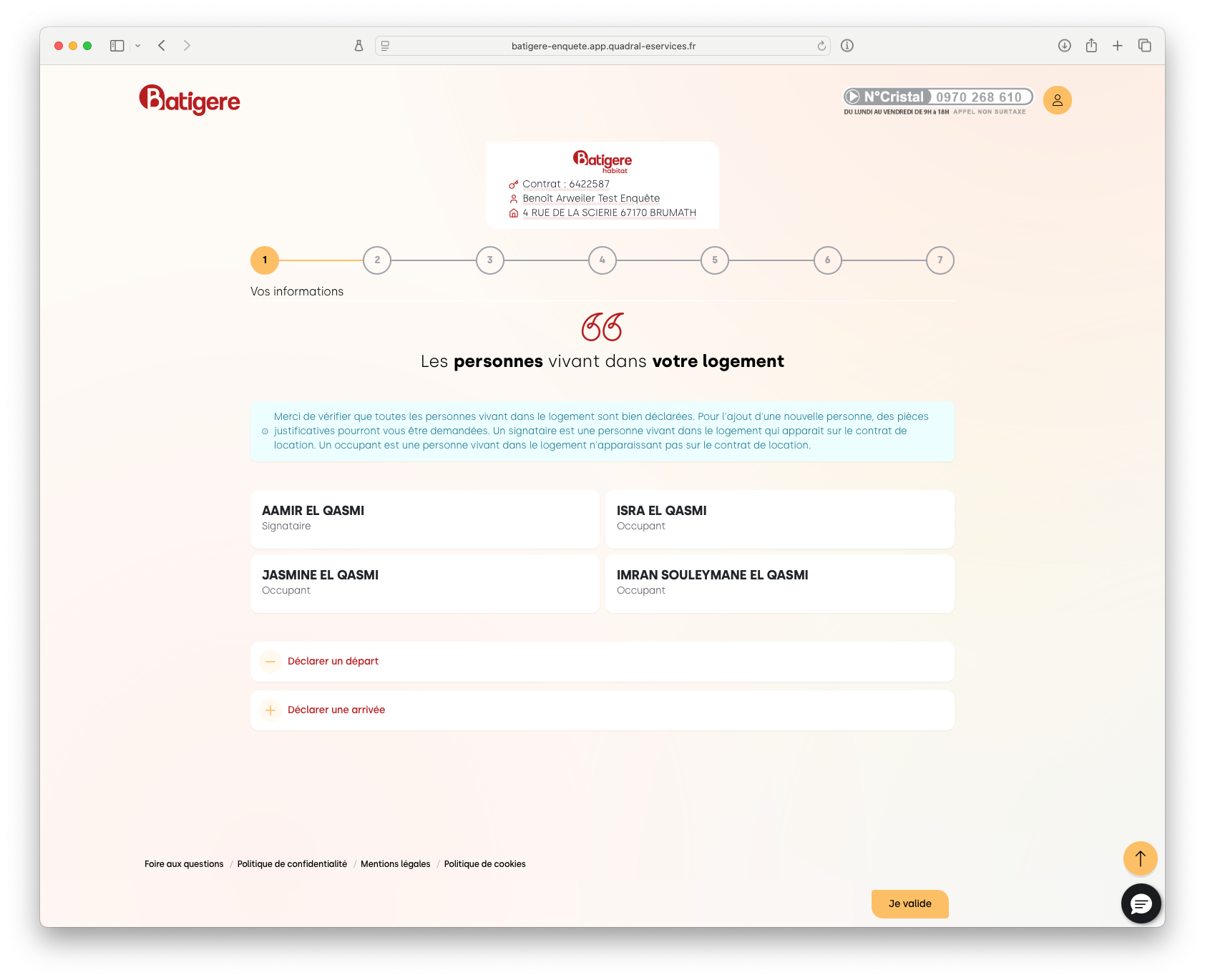 Les personnes composant le foyer connu par BATIGERE sont affichés ici.
