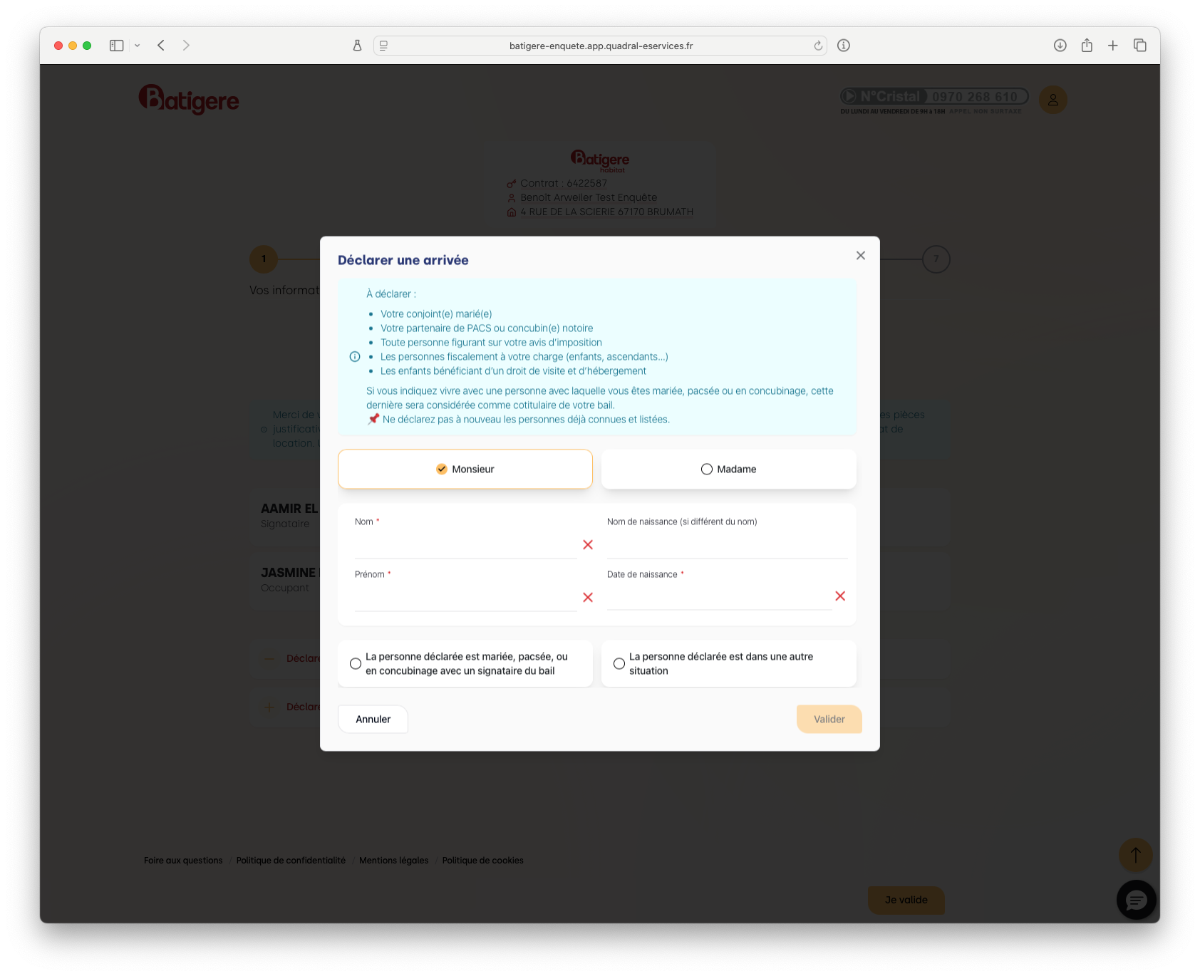 Le répondant doit être toute nouvelle arrivée (une personne qui va occuper le logement de manière pérenne et non temporaire) ou tout départ définitif.
